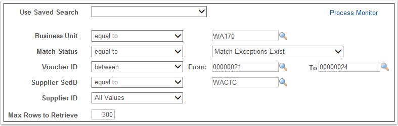 - Select criteria to define the vouchers to review. For example: