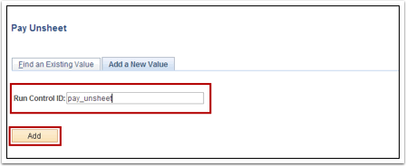 - Enter an existing Run Control ID or Click the Add a New Value tab and create a new Run Control ID.