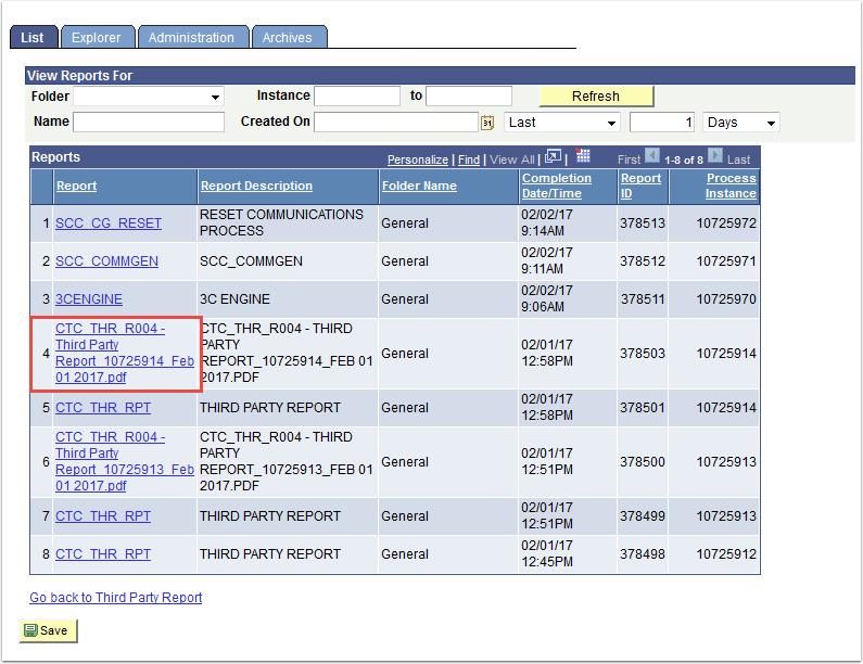 - Click the Go back to Third Party Report hyperlink to return to the Third Party Report page.