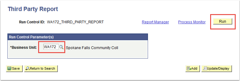 Navigation: Main Menu > Student Financials > CTC Custom > CTC SF Reports > Third Party Report