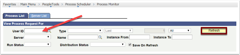 Navigation: PeopleTools > Process Scheduler > Process Monitor